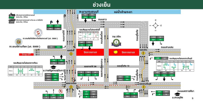 - รถที่ลงจากสะพานซังฮี้ สามารถตรงไปมุ่งหน้าแยกซังฮี้ และเลี้ยวขวาเข้าสู่โซนโรงเรียนได้