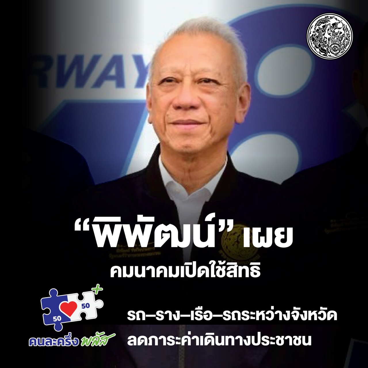 นายพิพัฒน์ รัชกิจประการ รองนายกรัฐมนตรี และ รมว.คมนาคม เปิดเผยว่า กระทรวงคมนาคมได้ดำเนินการตามนโยบายของรัฐบาลภายใต้การนำของนาย อนุทิน ชาญวีรกูล นายกรัฐมนตรี ที่มุ่งช่วยเหลือประชาชนในการลดภาระค่าครองชีพและเพิ่มกำลังซื้อ ผ่านโครงการ “คนละครึ่ง พลัส” ซึ่งเป็นมาตรการสำคัญเพื่อขับเคลื่อนเศรษฐกิจฐานรากให้เดินหน้าควบคู่กับการพัฒนาระบบคมนาคมขนส่งสาธารณะของประเทศ