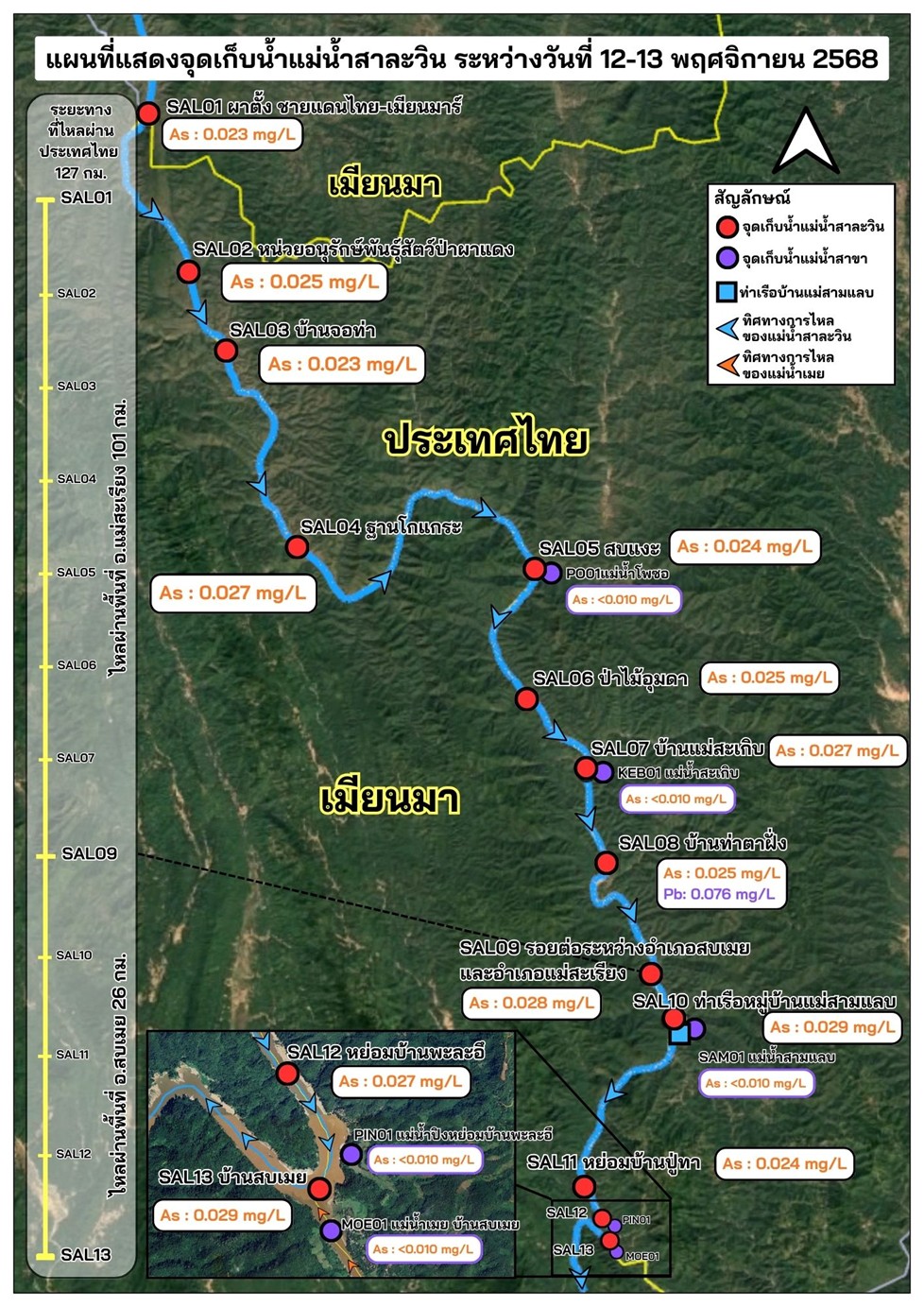 ตรวจพบน้ำสาละวินมีค่าสารหนู-ค่าตะกั่วเกินมาตรฐาน คพ.เร่งหาแหล่งน้ำ ขอเมียนมาสอบแหล่งกำเนิด
