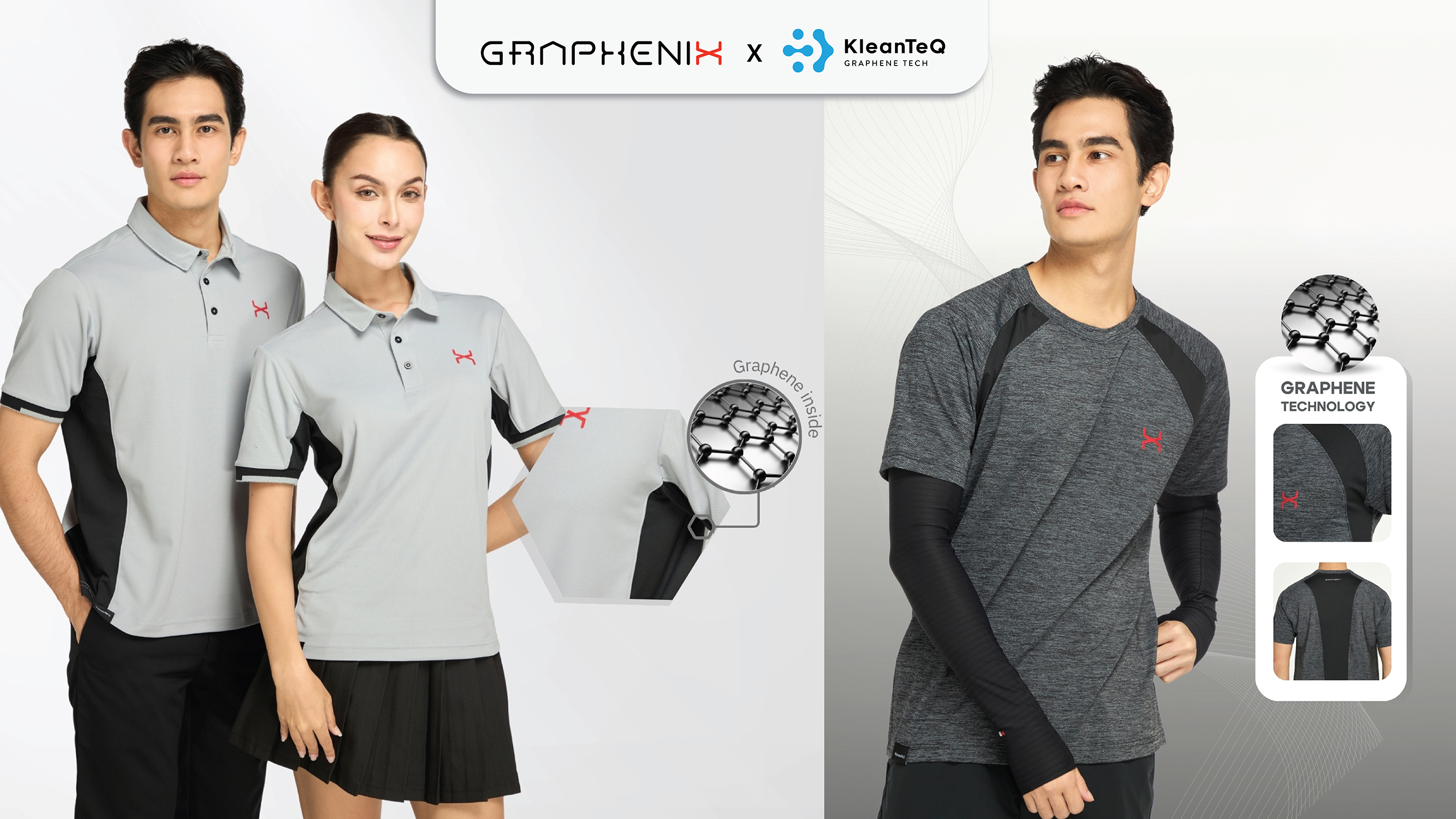 นายยุทธนา ศิลป์สรรค์วิชช์ กรรมการบริหาร HSS กล่าวว่า คุณสมบัติเด่นของผลิตภัณฑ์ “Graphenix x KleanTeQ” จะเปลี่ยนคุณสมบัติของผ้าให้เหนือกว่า ด้วยสัมผัสแห่งความเย็นสบายระบายอากาศและความร้อนได้อย่างมีประสิทธิภาพ มอบความมั่นใจในทุกกิจกรรมกลางแจ้ง ปกป้องผิวจากรังสี UV พร้อมลดการสะสมของแบคทีเรียและกลิ่นอับ และด้วยคุณสมบัติปลดปล่อยรังสีอินฟราเรดคลื่นยาว (Far Infrared) ช่วยให้รู้สึกผ่อนคลายสบายตัวและสดชื่นตลอดวัน