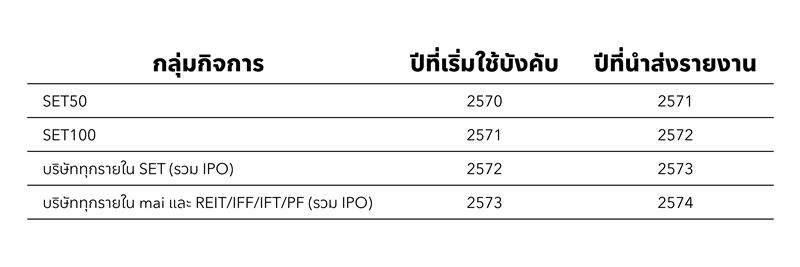 นอกจากนี้ ก.ล.ต. เห็นควรทบทวนเฉพาะหลักการที่เกี่ยวข้องกับการบังคับใช้ในส่วนของระยะเวลาการเริ่มใช้บังคับ ซึ่งได้รับความเห็นชอบโดยคณะกรรมการกำกับตลาดทุนเมื่อเดือนพฤศจิกายน 2568 โดยมีสาระสำคัญของหลักการที่ปรับปรุง ดังนี้