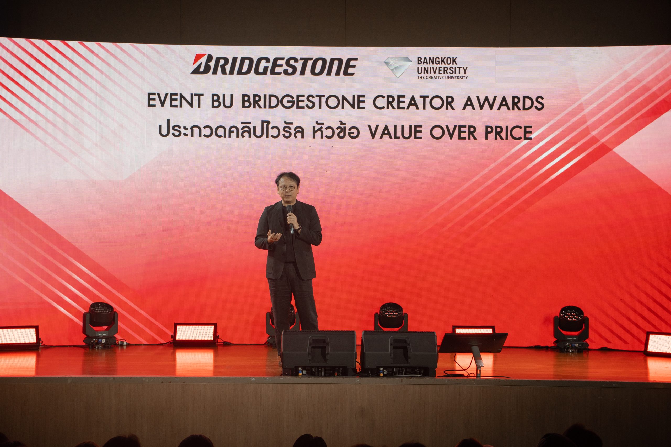 คุณโชทาโร่ คิตะมุระ ผู้อำนวยการสายงานธุรกิจยางรถยนต์นั่งและรถบรรทุกขนาดเล็ก บริษัทบริดจสโตนเซลส์ (ประเทศไทย) จำกัด กล่าวว่า “ปัจจุบันคนรุ่นใหม่ให้ความสนใจเป็นอย่างมากกับการสร้างสรรค์คอนเทนต์ ผมรู้สึกยินดีที่ได้เห็นพลังความคิดสร้างสรรค์ของน้องๆ นักศึกษา บริดจสโตน ต้องการเป็นส่วนหนึ่งในการสนับสนุนให้เด็กรุ่นใหม่ได้พัฒนาทักษะอย่างเต็มศักยภาพ เพราะเวทีนี้ไม่ใช่แค่การแข่งขัน แต่เป็นโอกาสเตรียมความพร้อมให้พวกเขาก้าวสู่เส้นทางอาชีพในอนาคตอย่างมั่นใจ เราเชื่อว่าคนรุ่นใหม่คือพลังสำคัญที่จะขับเคลื่อนนวัตกรรมและการเดินทางซึ่งสอดคล้องกับเป้าหมายของบริดจสโตนที่มุ่งมั่นพัฒนาผลิตภัณฑ์ บริการ และโซลูชั่น พร้อมเดินหน้าสร้างประสบการณ์ และกิจกรรมการตลาดออนไลน์อย่างต่อเนื่องเพื่อตอบรับกับไลฟ์สไตล์การเดินทางของคนรุ่นใหม่อย่างแท้จริง”