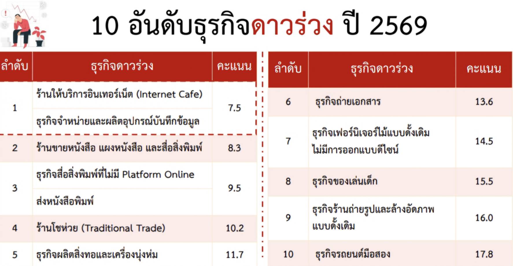 *10 อันดับธุรกิจดาวร่วงปี 69