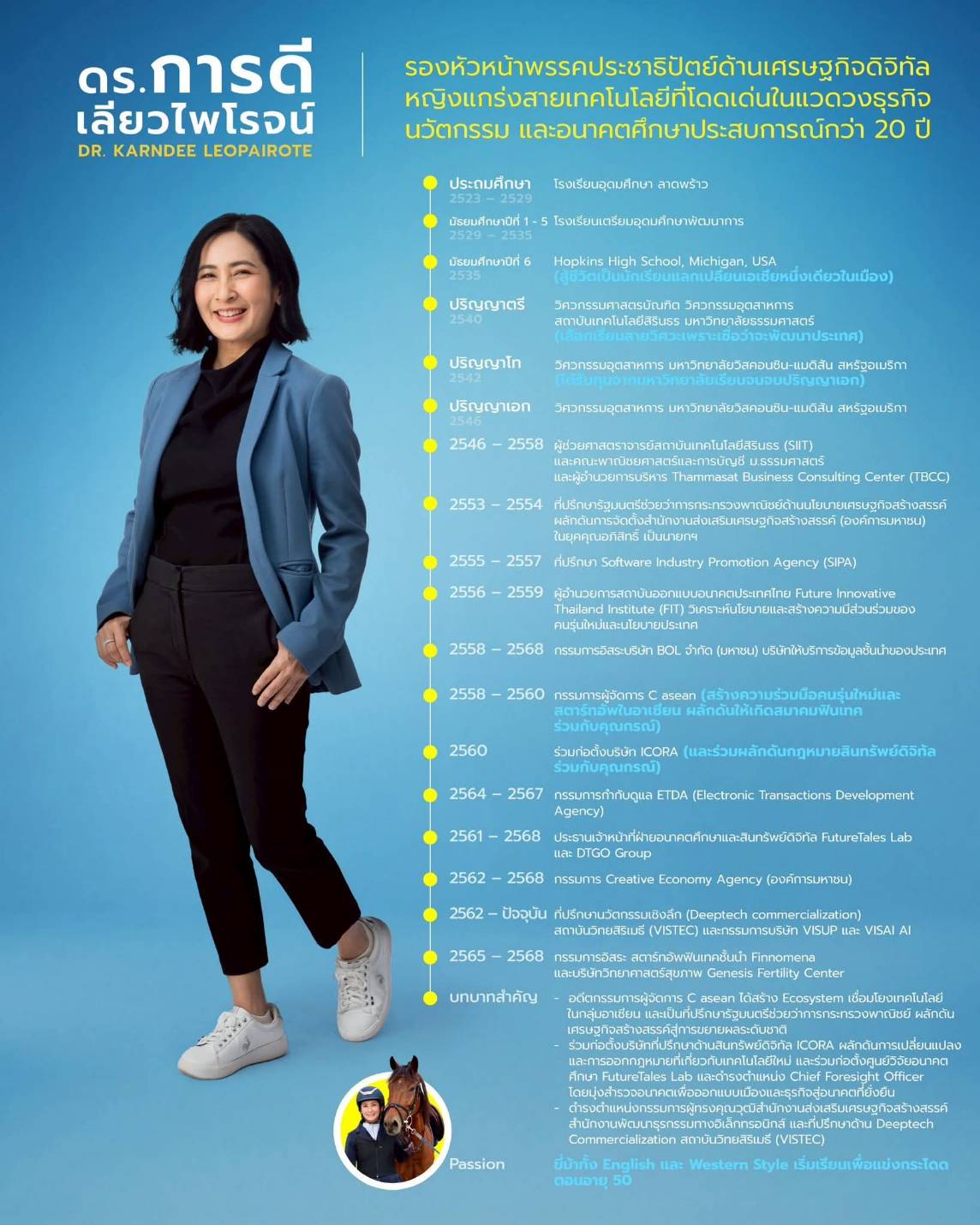 “ถ้ามีโอกาสได้ทำงาน อยากให้มองประสบการณ์ที่ทำงานร่วมกันเป็นทีม สิ่งที่เป็นความงาม และความสนุกในการทำงาน คือ ทั้งแคนดิเดตทั้ง 3 คน ทำงานกันมานาน ทั้งในเรื่องเศรษฐกิจสร้างสรรค์ และร่วมกันผลักดันเรื่องสตาร์ทอัพ รวมถึงสินทรัพย์ดิจิทัล ซึ่งเราทำงานร่วมกันมา และมี DNA เหมือนกัน ในเรื่องความสุจริต และความตั้งใจในการทำงาน” นางการดี กล่าว