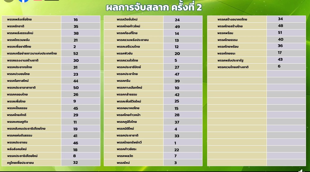 49.พรรคไทยพร้อม ได้หมายเลข 36