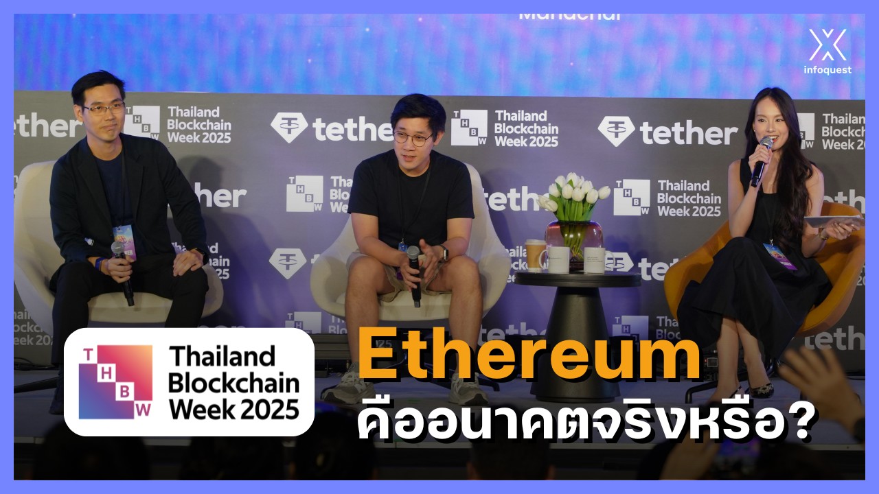 ในงาน Thailand Blockchain Week 2025 นายภากร ภู่ทรานนท์ Director of Data Transformation จาก CPF และ นายอรรณวุฒิ ลีไพศาลสุวรรณา Technical Contributor, Lean Ethereum / Ream Labs ได้แสดงมุมมองต่อทิศทางของ Ethereum (ETH) ทั้งในเชิงโครงสร้างตลาด ความปลอดภัยของเชน และการแข่งขันจากเชนทางเลือก โดยระบุว่านอกจากเงินสถาบันที่ไหลเข้ามาอย่างต่อเนื่องแล้ว อนาคตของ Ethereum ยังเกี่ยวข้องกับโครงสร้างพื้นฐาน AI และการพัฒนามาตรฐานใหม่สำหรับการชำระเงินในโลกดิจิทัล