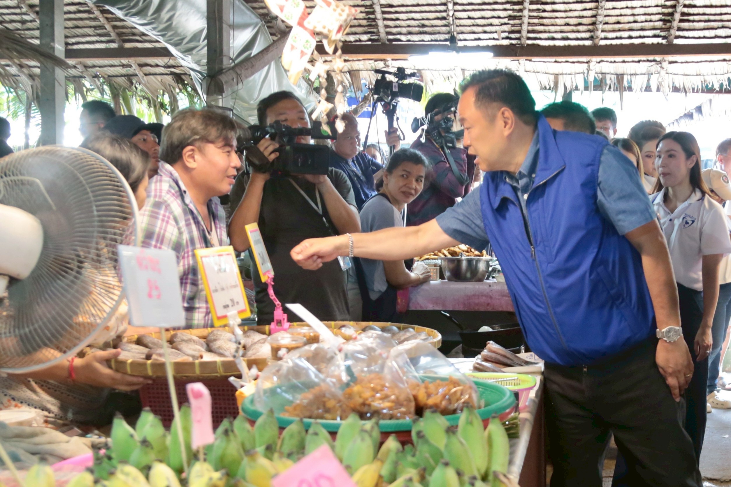 นายอนุทิน ยังแวะร้านขายหมูทอด แม่ค้าตะโกนเรียก “นายก” ก่อนจะป้อนหมูทอดให้นายอนุทิน แล้วกล่าวว่า “นายกฯ ติดอยู่ 2,000 บาท พูดแล้วทำด้วยนะคะ”