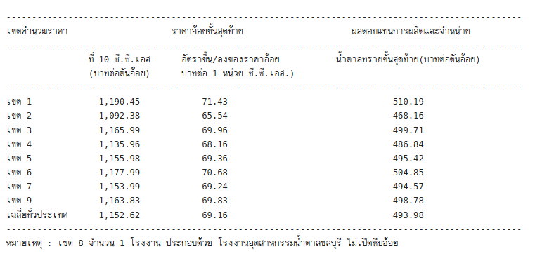 1.ราคาอ้อยขั้นสุดท้ายในอัตรา 1,152.62 บาทต่อต้นอ้อย ที่ระดับคุณภาพความหวาน 10 ซี.ซี.เอส.