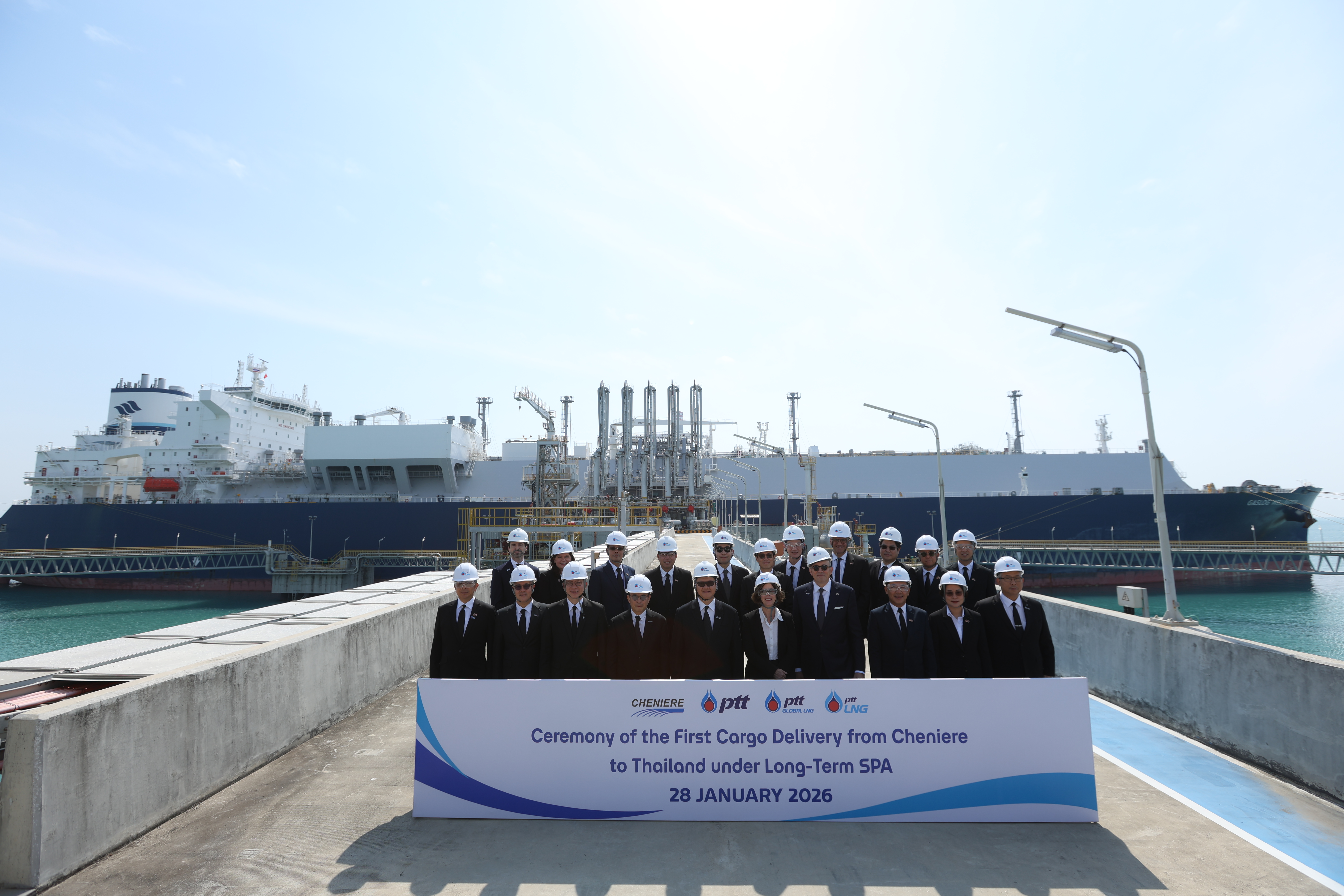 นายประสงค์ อินทรหนองไผ่ รักษาการ ประธานเจ้าหน้าที่ปฏิบัติการกลุ่มธุรกิจปิโตรเลียมขั้นต้น บมจ.ปตท. [PTT] และ นายพงษ์พันธุ์ อมรวิวัฒน์ รองกรรมการผู้จัดการใหญ่หน่วยธุรกิจก๊าซธรรมชาติ ปตท. พร้อมด้วย Mr. Anatol Feygin, Chief Commercial Officer บริษัท Cheniere Energy Inc. ผู้ผลิตและส่งออกก๊าซธรรมชาติเหลว (LNG) รายใหญ่ที่สุดของสหรัฐฯ โดยได้รับเกียรติจาก Mr. Sean O’Neill เอกอัครราชทูตสหรัฐอเมริกาประจำประเทศไทย ร่วมพิธีรับมอบ LNG เที่ยวเรือปฐมฤกษ์จากสหรัฐอเมริกาสู่ประเทศไทยภายใต้สัญญาระยะยาว ปริมาณ 1 ล้านตันต่อปี เป็นระยะเวลา 15 ปี ซึ่งดำเนินการตามมติคณะกรรมการนโยบายพลังงานแห่งชาติ (กพช.) เมื่อวันที่ 12 กรกฎาคม 2565