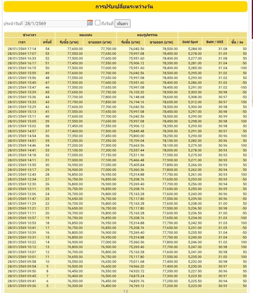 • ทองคำแท่ง 96.5% รับซื้อบาททองคำละ 77,750 บาท ขายออกบาททองคำละ 77,850 บาท