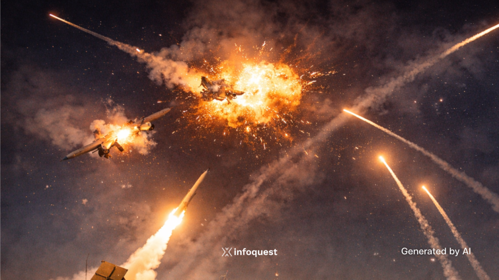 กระทรวงฯ ระบุผ่านทางเอ็กซ์ว่า เสียงดังที่ประชาชนได้ยินในบางพื้นที่เกิดจากการที่ระบบป้องกันภัยทางอากาศกำลังสกัดขีปนาวุธและโดรนดังกล่าว