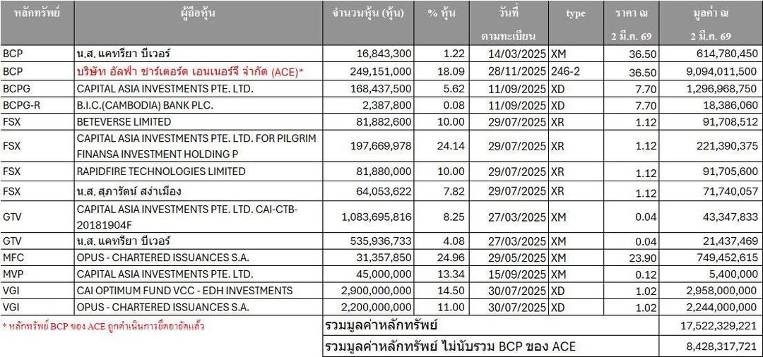 นอกจากนี้ นายกรณ์ยังได้ชี้ให้เห็นถึงประเด็นสำคัญทางกฎหมายว่า หากมีการรวมกลุ่มบุคคลถือหุ้นใหญ่ในกรณีดังกล่าว จะเข้าข่ายการถือหุ้นรวมกันถึง 51.96% ซึ่งอาจเป็นการกระทำที่ผิดต่อ พ.ร.บ. หลักทรัพย์ ทั้งในเรื่องการรายงานการเปลี่ยนแปลงการถือหุ้นที่มีนัยสำคัญ และหน้าที่ในการเสนอซื้อหลักทรัพย์จากประชาชนทั่วไป รวมถึงความผิดฐานการซื้อขายแบบ Matched Order