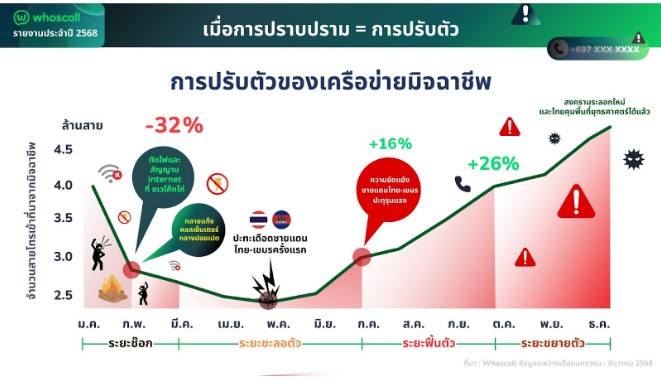 Whoscall เผยผลการวิเคราะห์และระบุการโทรและ SMS รวมกว่า 6,000 ล้านครั้ง ทั่วโลกในปี 2568 ในจำนวนนี้มี 480 ล้านครั้ง ที่ได้รับการยืนยันว่าเป็นสายหลอกลวง คิดเป็นประมาณ 8% ของการสื่อสารโทรคมนาคมโลกทั้งหมด แม้ตัวเลขรวมทั่วโลกจะลดลงจาก 540 ล้านครั้งจากปี 2567 แต่ประเทศไทยยังคงเผชิญกับปริมาณสายหลอกลวงสูงที่สุดในบรรดาตลาดเอเชียทั้งหมดที่Whoscall ให้บริการซึ่งสะท้อนให้เห็นถึงความจำเป็นเร่งด่วนในการยกระดับความตื่นตัวด้านความปลอดภัยทางดิจิทัล ซึ่งตรงกันข้ามกับการลดลงอย่างมีนัยสำคัญในตลาดใกล้เคียงอย่างไต้หวันและฮ่องกง