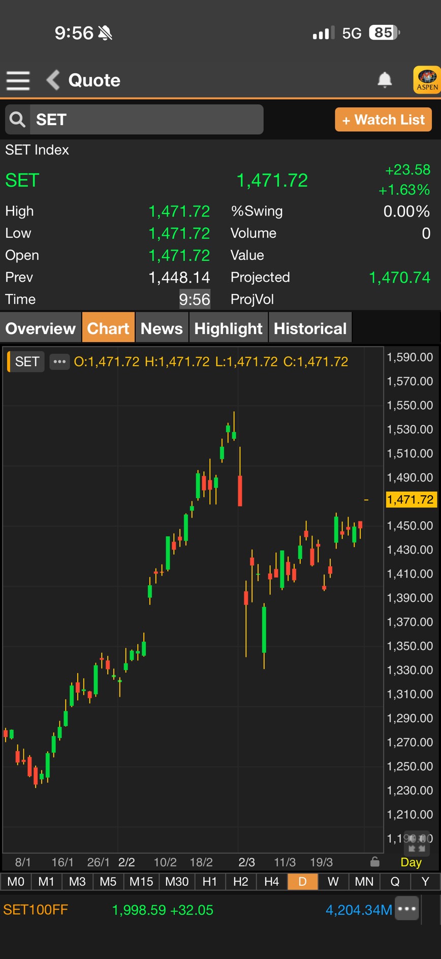เมื่อเวลา 9.56 น. ดัชนี SET เปิดที่ 1,471.72 จุด เพิ่มขึ้น 23.58 จุด (+1.63%)