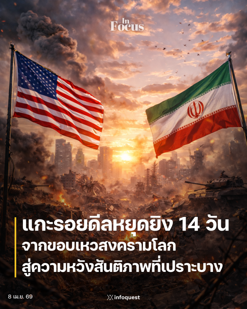 เช้าตรู่ของวันพุธที่ 8 เมษายน 2569 (ตามเวลาในประเทศไทย) โลกถอนหายใจด้วยความโล่งอก หลังจากประธานาธิบดีโดนัลด์ ทรัมป์ แห่งสหรัฐฯ ประกาศหยุดยิงชั่วคราวกับอิหร่านเป็นเวลา 2 สัปดาห์ เพียงไม่ถึง 2 ชั่วโมงก่อนถึงกำหนดเส้นตายที่อาจนำไปสู่ “การสูญสิ้นอารยธรรม” ตามคำขู่ของผู้นำสหรัฐฯ ขณะที่มีรายงานว่าเครื่องบินทิ้งระเบิด B-52 ได้รับคำสั่งให้มุ่งหน้าสู่พื้นที่เป้าหมายเป็นที่เรียบร้อยแล้ว