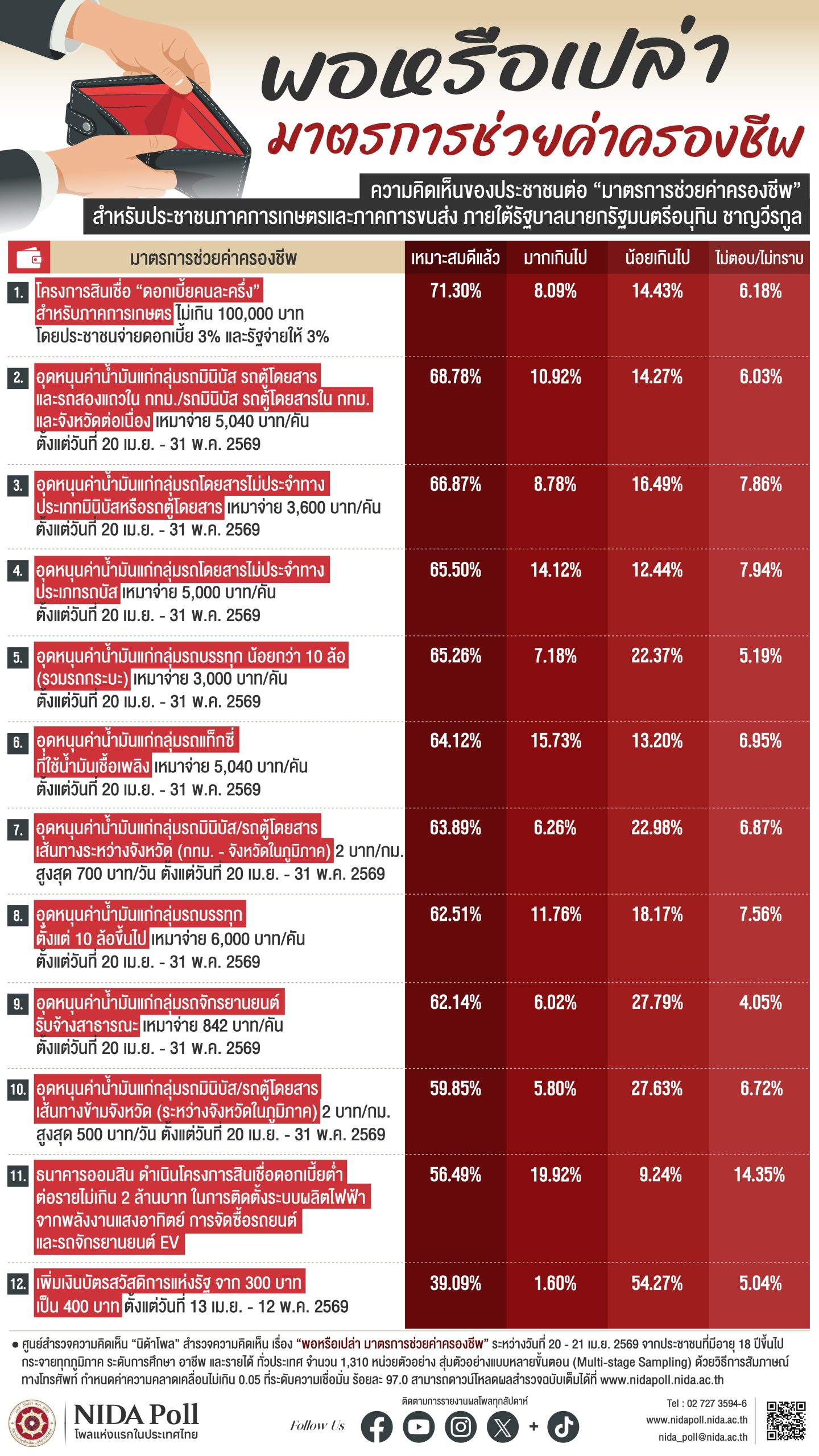 ศูนย์สำรวจความคิดเห็น “นิด้าโพล” สถาบันบัณฑิตพัฒนบริหารศาสตร์ (นิด้า) เปิดเผยผลการสำรวจ เรื่อง “พอหรือเปล่า มาตรการช่วยค่าครองชีพ”