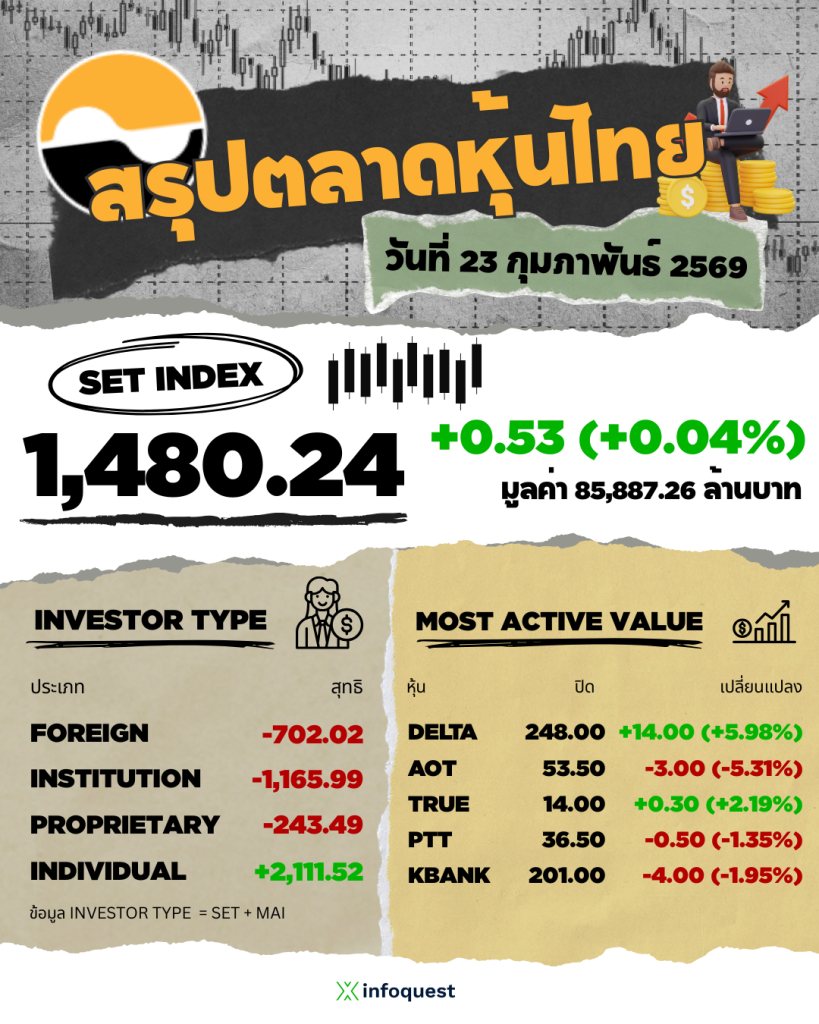 ตลาดหุ้นเอเชียปิดภาคเช้าปรับตัวขึ้นเป็นส่วนใหญ่ในวันนี้ (23 ก.พ.) ขณะที่นักลงทุนยังคงจับตามาตรการภาษีศุลกากรของสหรัฐฯ อย่างใกล้ชิด ดัชนีฮั่งเส็งตลาดหุ้นฮ่องกงปิดภาคเช้าที่ระดับ 27,019.21 จุด…
