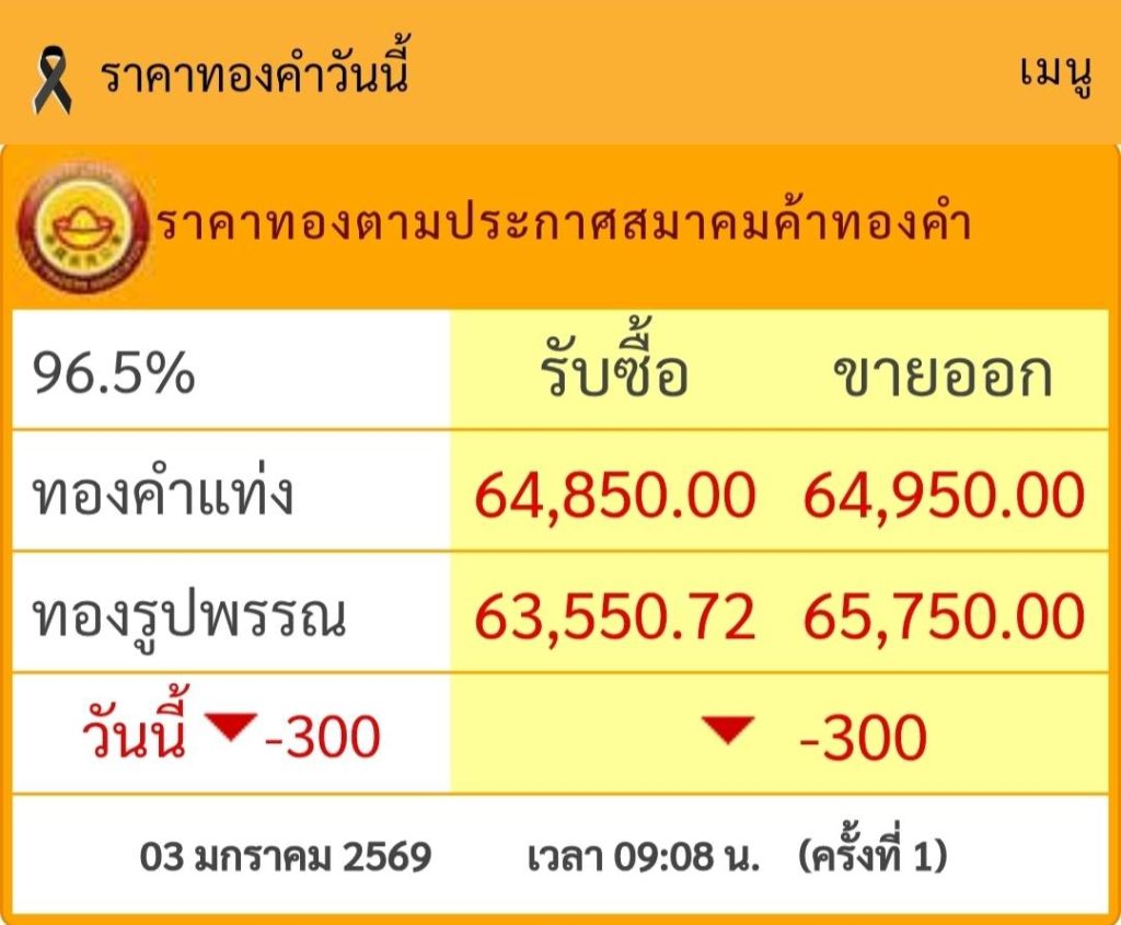ทองพลิกกลับมาร่วงลงจากเมื่อวาน 300 บาท