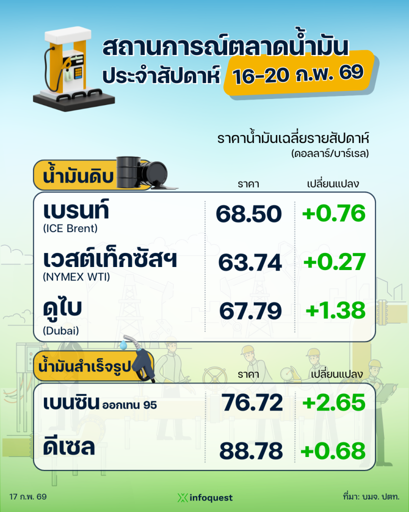 ปตท. รายงานสถานการณ์ตลาดน้ำมัน สัปดาห์ที่ 16-20 ก.พ. 69