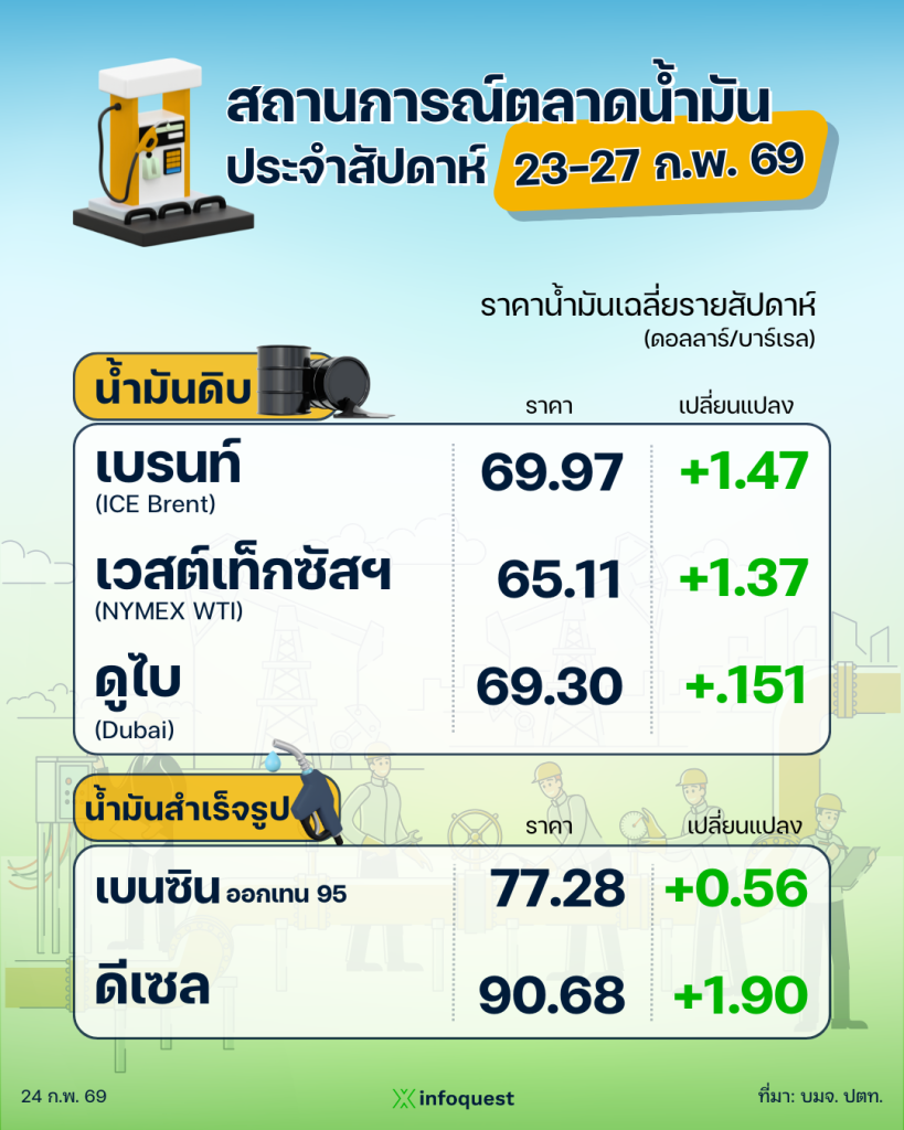 ปตท. รายงานสถานการณ์ตลาดน้ำมัน สัปดาห์ที่ 23-27 ก.พ. 69