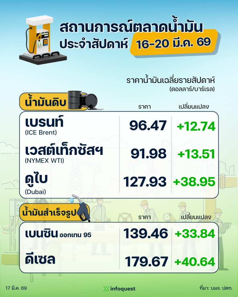 ปตท. รายงานสถานการณ์ตลาดน้ำมัน สัปดาห์ที่ 16-20 มี.ค. 69