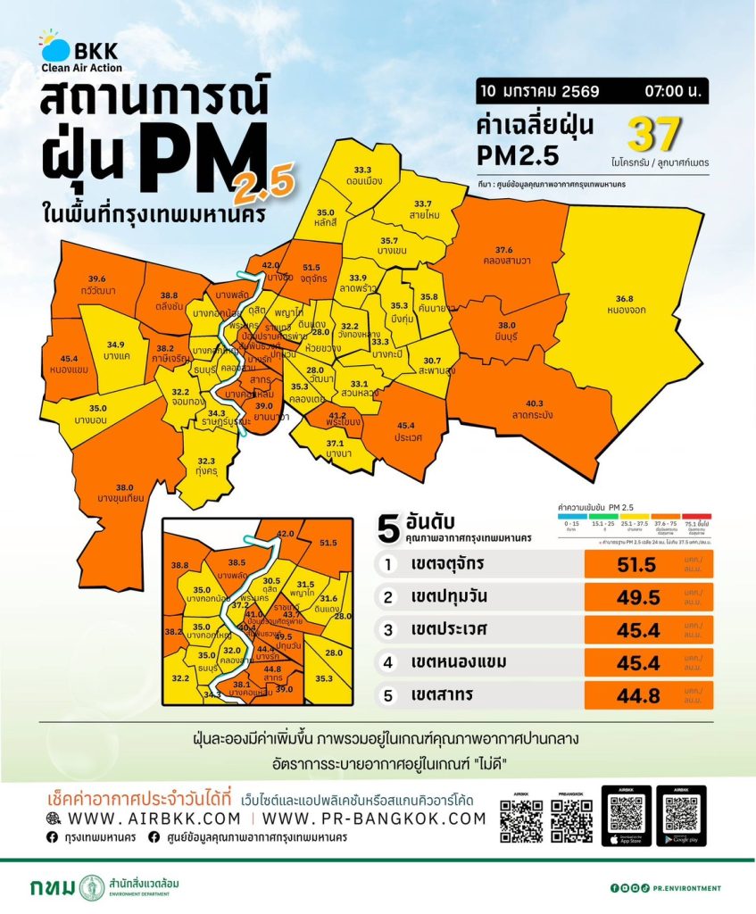 ฝุ่นวันเด็ก PM2.5 ระดับสีส้มท่วม 21 พื้นที่ในกรุงเทพฯ