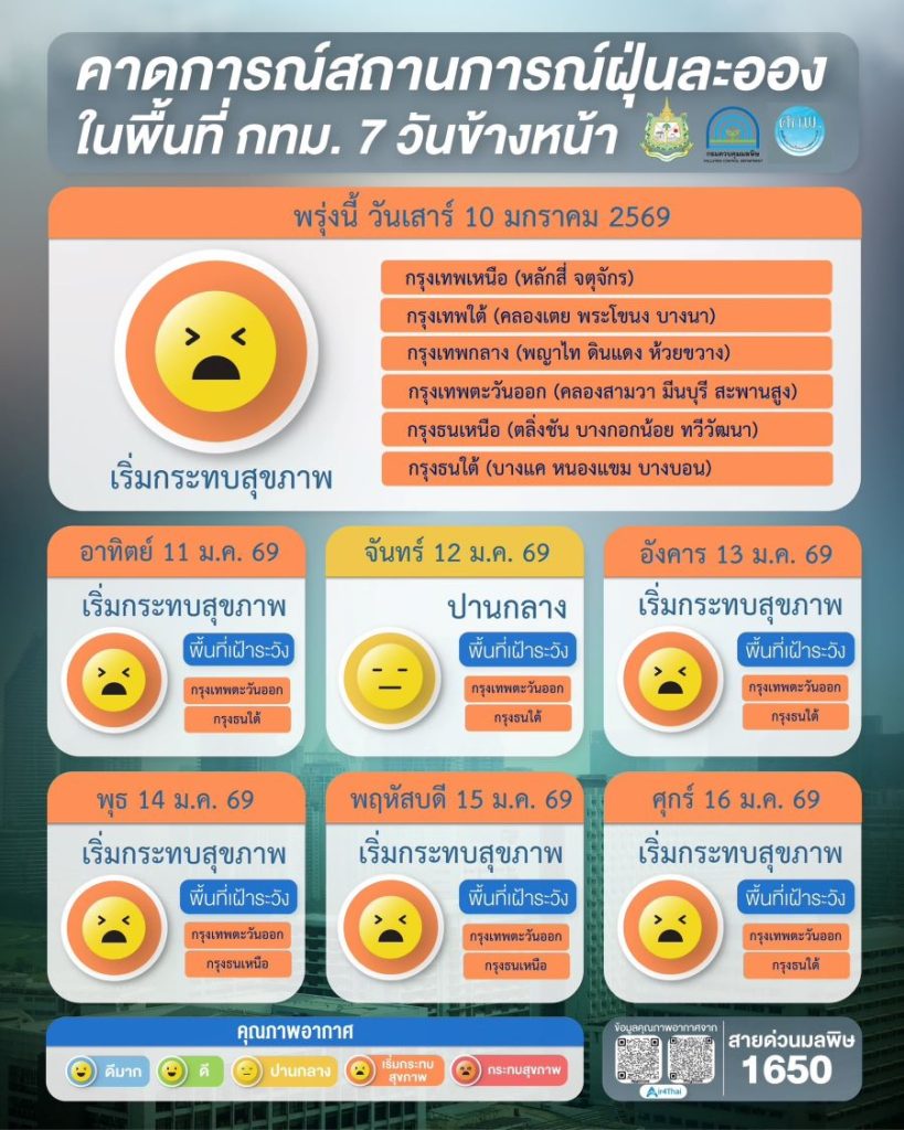 ห่วง PM2.5 พุ่งรับวันเด็ก ศกพ.คาดลากยาวถึงสัปดาห์หน้า แนะเช็คค่าฝุ่นก่อนออกจากบ้าน