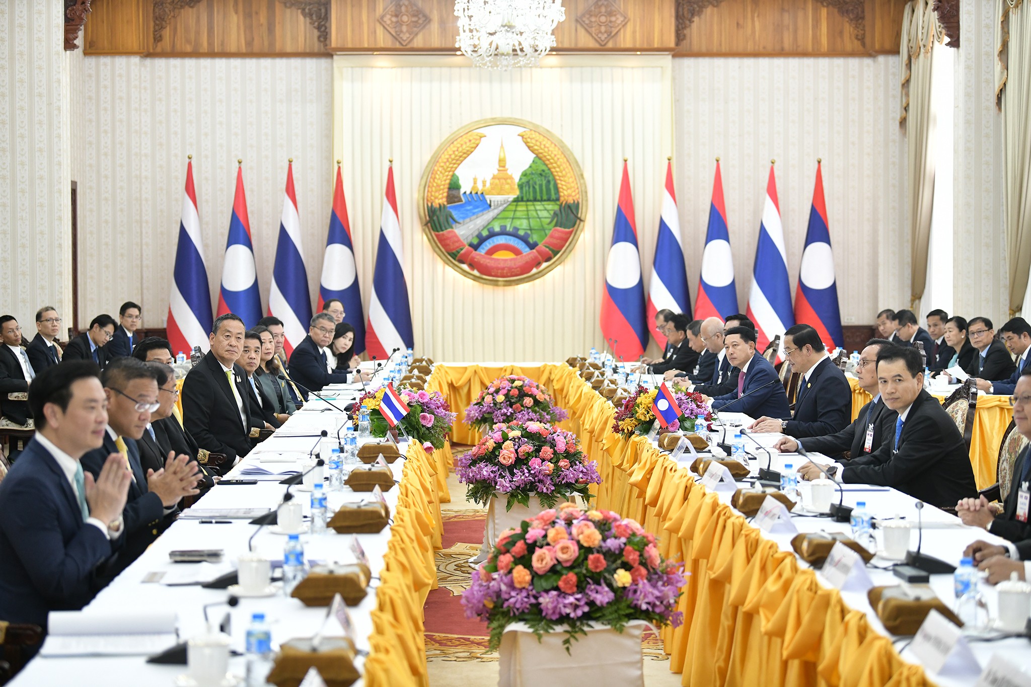 น.สพ.ชัย วัชรงค์ โฆษกประจำสำนักนายกรัฐมนตรี เปิดเผยว่า นายเศรษฐา ทวีสิน นายกรัฐมนตรีและ รมว.คลัง เดินทางถึงท่าอากาศยานนานาชาติวัดไต นครหลวงเวียงจันทน์ สาธารณรัฐประชาธิปไตยประชาชนลาว (สปป.ลาว) และได้เข้าร่วมหารือเต็มคณะร่วมกับ นายสอนไซ สีพันดอน นายกรัฐมนตรี สปป.ลาว โดยต่างแสดงความยินดีที่ได้พบกันเพื่อส่งเสริมความสัมพันธ์และความร่วมมือให้ใกล้ชิดกัน และประเด็นที่ทั้งสองฝ่ายได้หารือร่วมกันที่สำคัญ ได้แก่