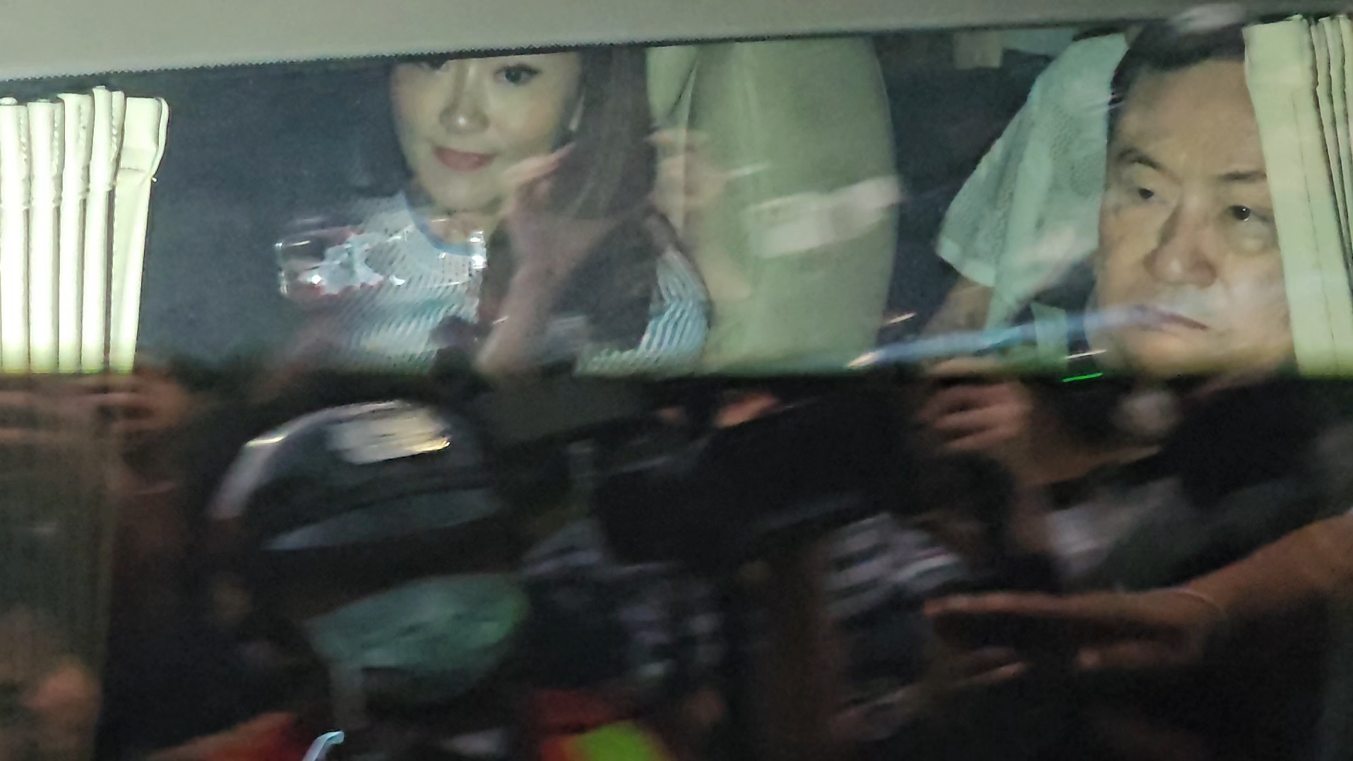 นายทักษิณ มีสีหน้าเรียบเฉย ใส่เฝือกคอ และใส่ที่ประคองแขนขวามือ ใส่เสื้อสีเขียวลายตาราง ใส่ขาสั้น ซึ่งเมื่อมาถึงได้ขับรถเข้าบ้านโดยทันที