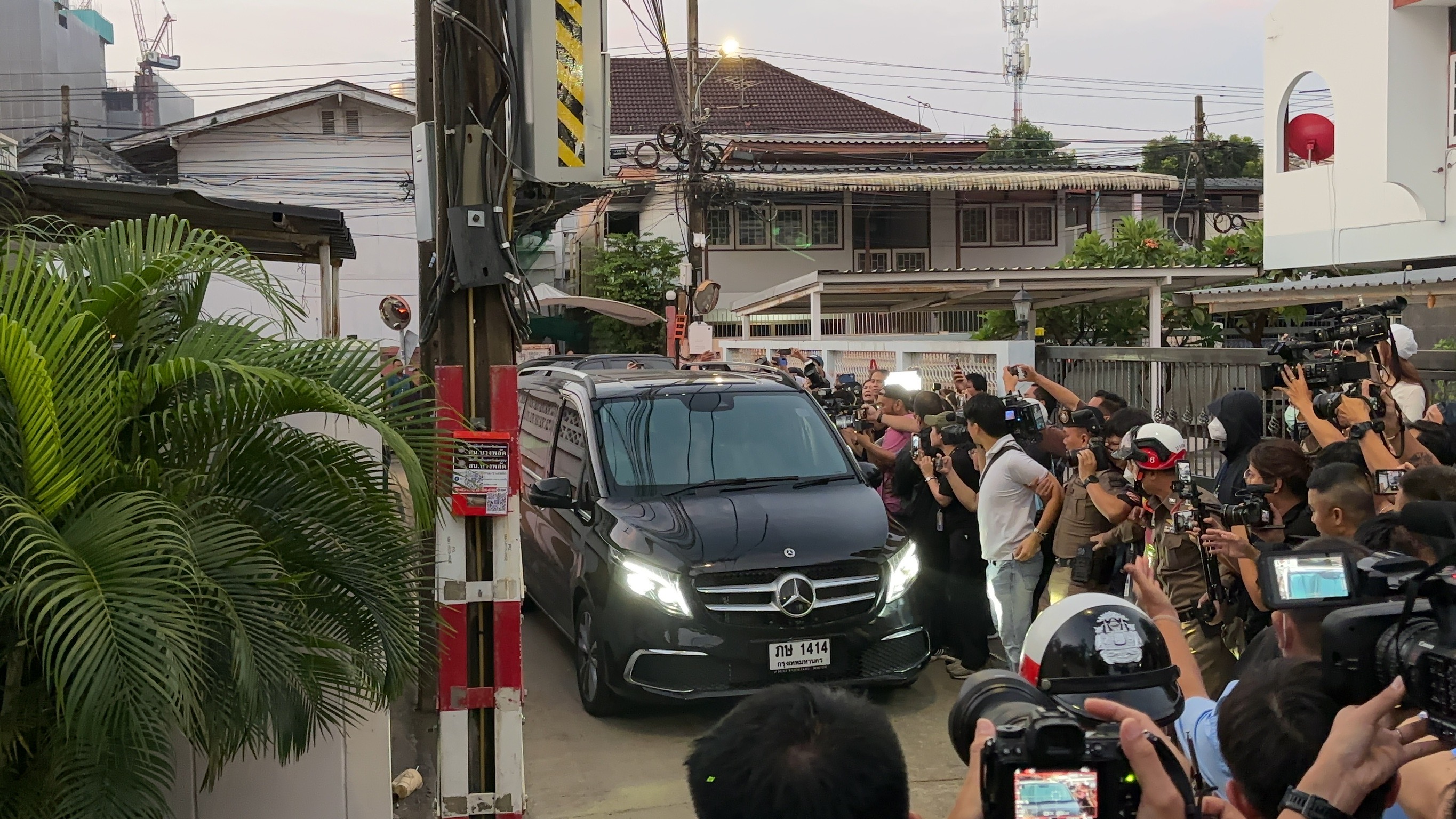 นายทักษิณ ชินวัตร อดีตนายกรัฐมนตรี เดินทางมาถึงที่บ้านจันทร์ส่องหล้า บ้านเลขที่ 472 ซอยจรัญสนิทวงศ์ 69 เมื่อเวลา 6.32 น. โดยเดินทางมาด้วยรถเบนซ์ ทะเบียน ภษ 1414 นั่งมาพร้อมกับลูกสาว น.ส.แพทองธาร ชินวัตร หัวหน้าพรรคเพื่อไทย และน.ส.พิณทองธา ชินวัตร