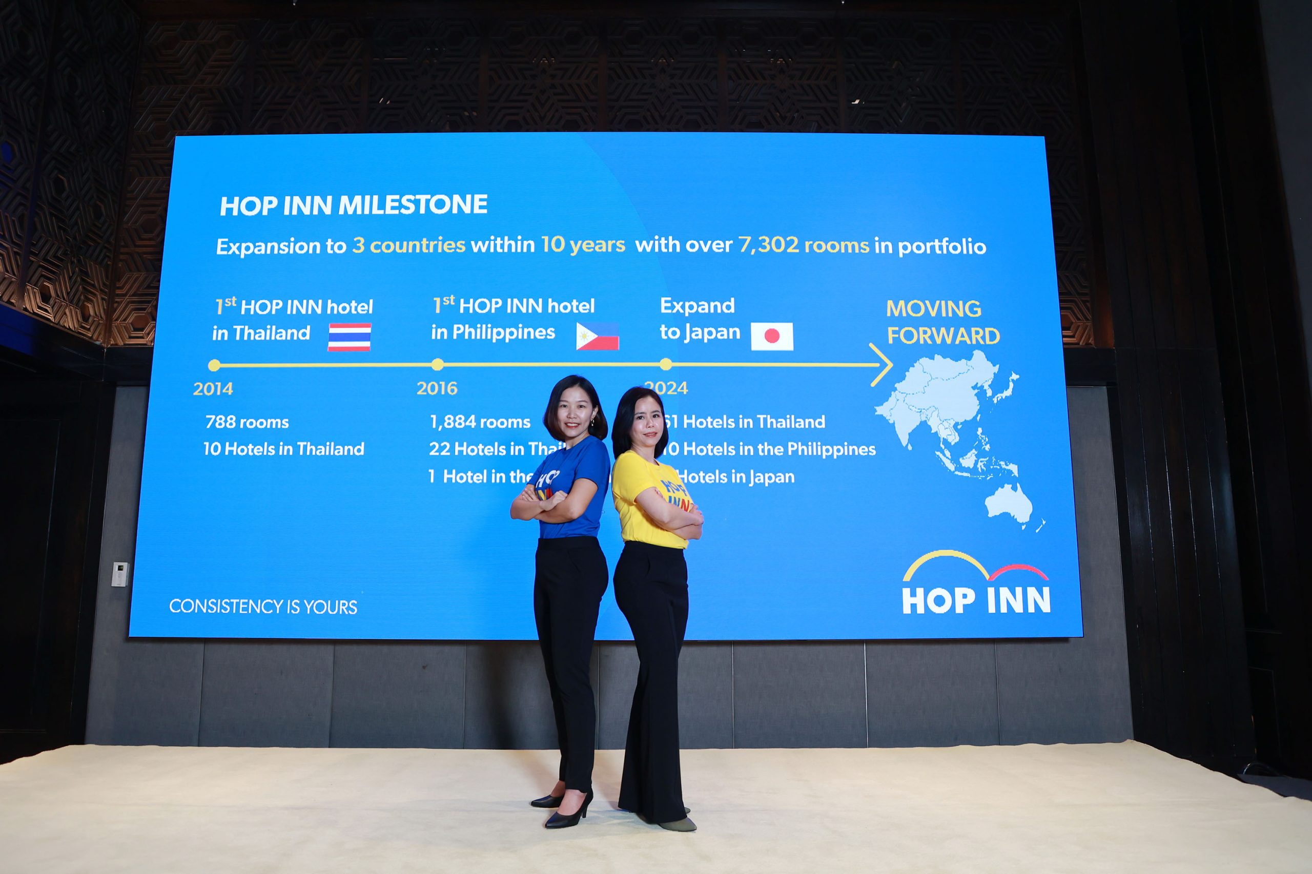 คุณพิชานันท์ บุญพร้อมกุล กรรมการผู้จัดการใหญ่ สายพัฒนาธุรกิจ กล่าวว่า "ปีนี้เป็นปีที่ 10 ของโรงแรมฮ็อป อินน์ ตลอด 10 ปีเราสามารถทำได้ตามแผนทั้งการขยายและการรักษาคุณภาพการบริการ เราตั้งเป้าที่ใหญ่และสำคัญในปี 2030 จะขึ้นเป็นเครือข่ายโรงแรมบัดเจ็ทที่ดีที่สุดในเอเซียแปซิฟิค ปีนี้โรงแรมฮ็อป อินน์ ญี่ปุ่น เปิดให้บริการครบ 4 สาขา ในโตเกียวและเกียวโต และโรงแรมฮ็อป อินน์ ฟิลิปปินส์ เปิดให้บริการครบ 10 สาขา ครอบคลุม 3 เกาะหลัก ได้รับเสียงตอบรับที่ดีและเป็นการสร้างฐานลูกค้าที่ใหญ่ขึ้น จากหลายประเทศหลากหลายทวีป จึงทำให้เรามั่นใจว่าจะขยายเครือข่ายโรงแรมเพิ่มอย่างน้อยในอีก 3 ประเทศ ในภูมิภาคเอเชียแปซิฟิก"