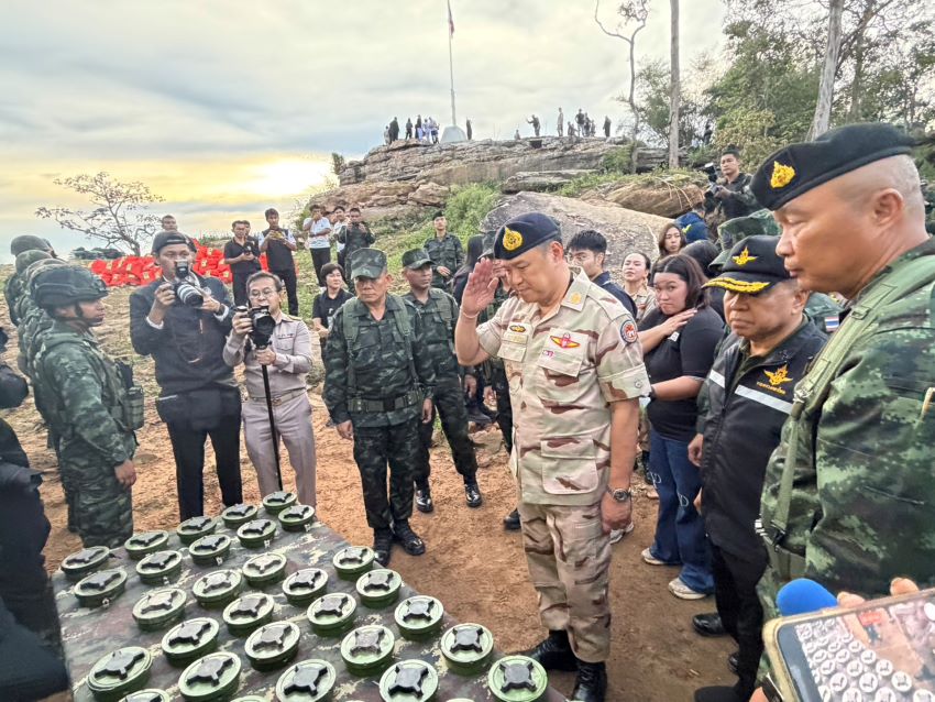 ผู้สื่อข่าวรายงานว่า นายกรัฐมนตรี ได้เดินทางไปที่ภูมะเขือ เพื่อตรวจเยี่ยมการปฏิบัติงานของกองกำลังแนวหน้า พร้อมรับฟังบรรยายสรุปสถานการณ์ที่ทหารเหยียบทุ่นระเบิดจนได้รับบาดเจ็บ โดยนายกรัฐมนตรี ได้กล่าวให้กำลังใจกับทหาร พร้อมแสดงความชื่นชมในการทำหน้าที่รักษาอธิปไตยของประเทศ และมอบถุงยังชีพให้แก่ทหารที่อยู่แนวหน้า โดยเมื่อถึงเวลา 18.00 น. นายกรัฐมนตรี ได้ร่วมยืนตรงเคารพธงชาติพร้อมกับบรรดาทหารในพื้นที่ด้วย
