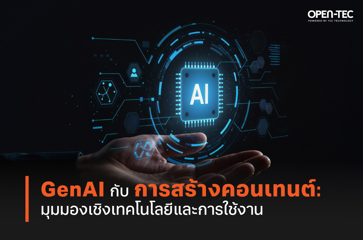 ในช่วงไม่กี่ปีที่ผ่านมา เทคโนโลยีปัญญาประดิษฐ์แบบสร้างสรรค์ (GenAI) ได้เข้ามามีบทบาทสำคัญต่อกระบวนการสร้างคอนเทนต์อย่างก้าวกระโดด ด้วยความสามารถในการผลิตสื่อดิจิทัลได้หลากหลายรูปแบบ ไม่ว่าจะเป็นข้อความ ภาพ เสียง หรือวิดีโอ ความเปลี่ยนแปลงดังกล่าวทำให้เกิดคำถามสำคัญว่า GenAI จะสามารถเข้ามาทดแทนการทำงานของมนุษย์ได้อย่างสมบูรณ์หรือไม่ วันนี้ OPEN-TEC ศูนย์กลางองค์ความรู้ด้านเทคโนโลยี (Tech Knowledge Sharing Platform) ภายใต้การดูแลของ TCC TECHNOLOGY GROUP จะพาสำรวจอย่างรอบด้านผ่านการทำความเข้าใจทั้งศักยภาพ ข้อจำกัด และบทบาทร่วมกันของมนุษย์และ GenAI ในกระบวนการสร้างคอนเทนต์ยุคใหม่