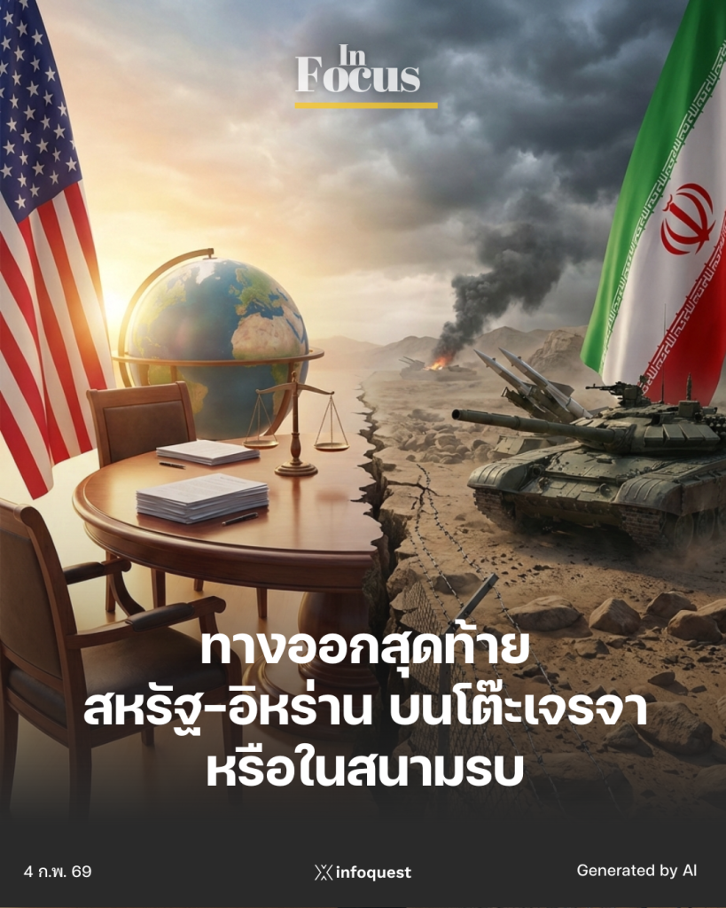 In Focus สัปดาห์นี้ จะพาไปจับตาว่า การเปิดโต๊ะเจรจาจะนำไปสู่การคลี่คลายความขัดแย้งอย่างจริงจัง หรือเป็นเพียงส่วนหนึ่งของเกมต่อรองท่ามกลางแรงกดดันจากปฏิบัติการทางทหาร