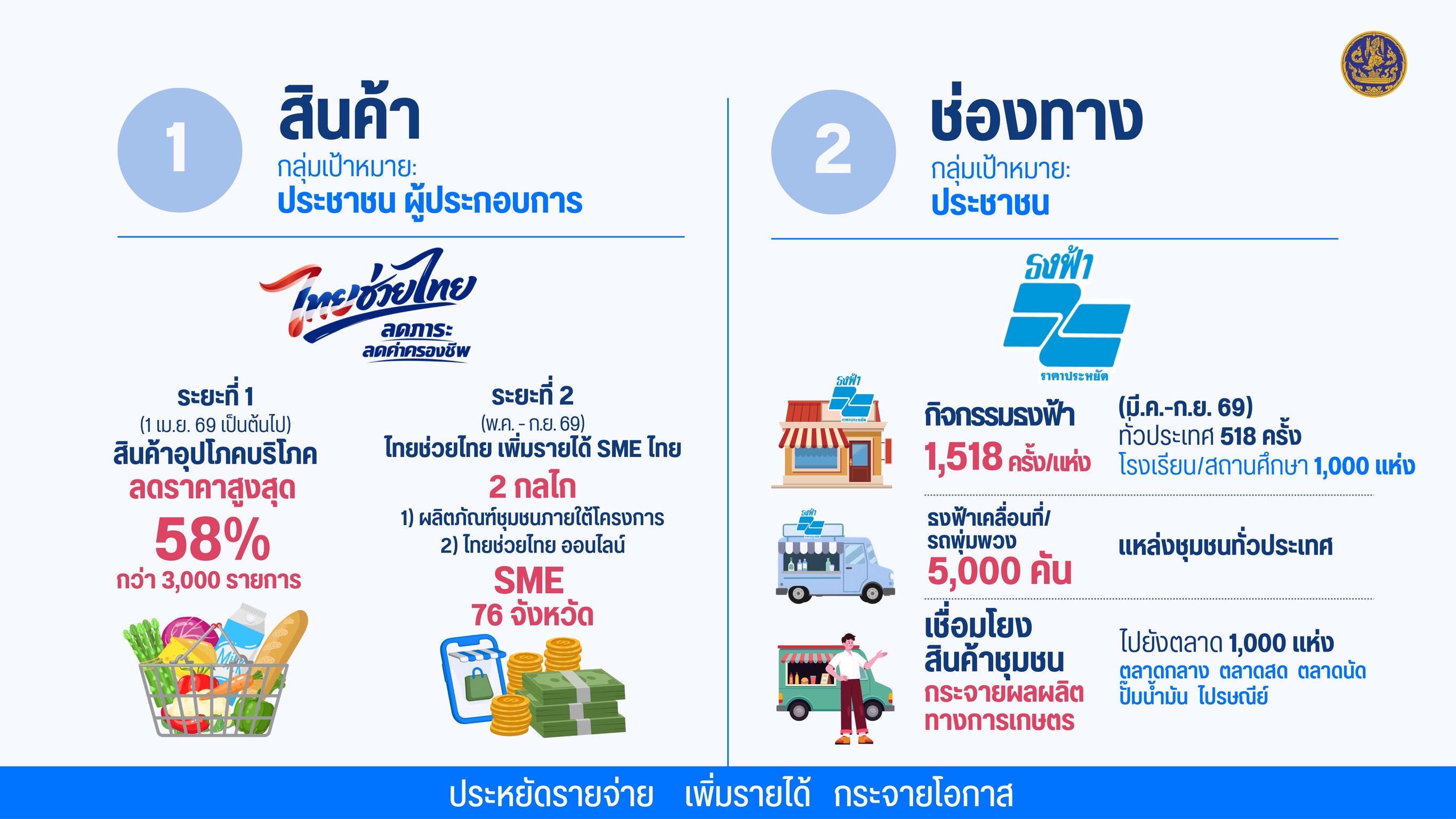 2. โครงการ "เยียยวยาลดค่าครองชีพประชาชน" ผ่านงานธงฟ้า รถโมบาย และรถพุ่มพวง จัดทั่วประเทศ คาดช่วยลดภาระประชาชน ไม่น้อยกว่า 228 ล้านบาท
