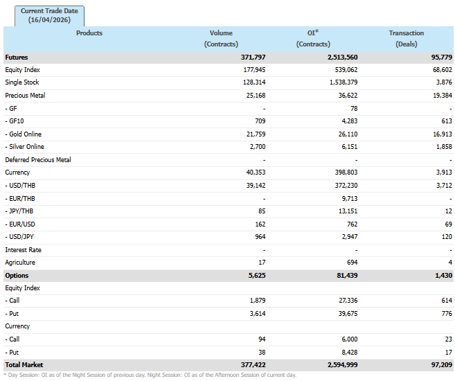 ภาวะตลาดอนุพันธ์: ร่วงรับแรงกดดันหุ้น DELTA-กลุ่มน้ำมันหลังราคาปรับลงจากความคาดหวังเจรจารอบใหม่