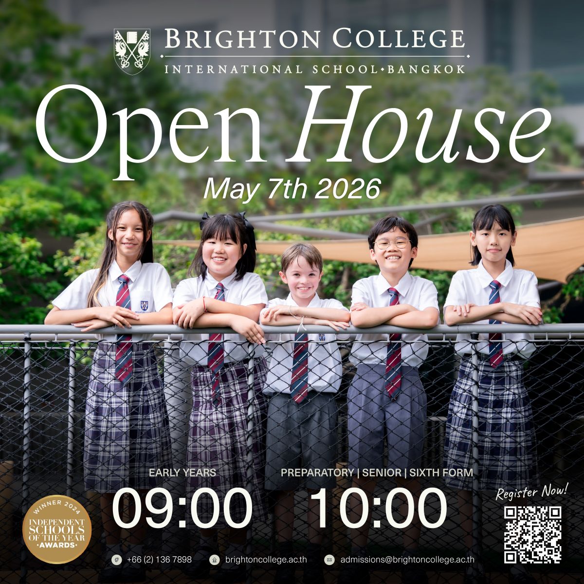 ขอเชิญผู้ปกครองเข้าร่วมงาน Open House ครั้งถัดไปของโรงเรียนนานาชาติไบรท์ตัน คอลเลจ กรุงเทพฯ ในวันที่ 7 พฤษภาคม 2569 สำหรับข้อมูลเพิ่มเติม กรุณาติดต่อ [email protected]