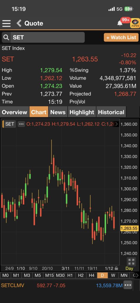หุ้นไทยปิดร่วง 12.38 จุดรับแรงขาย DELTA-กลุ่มแบงก์ ปัญหาชายแดนไทย-กัมพูชากดดัน