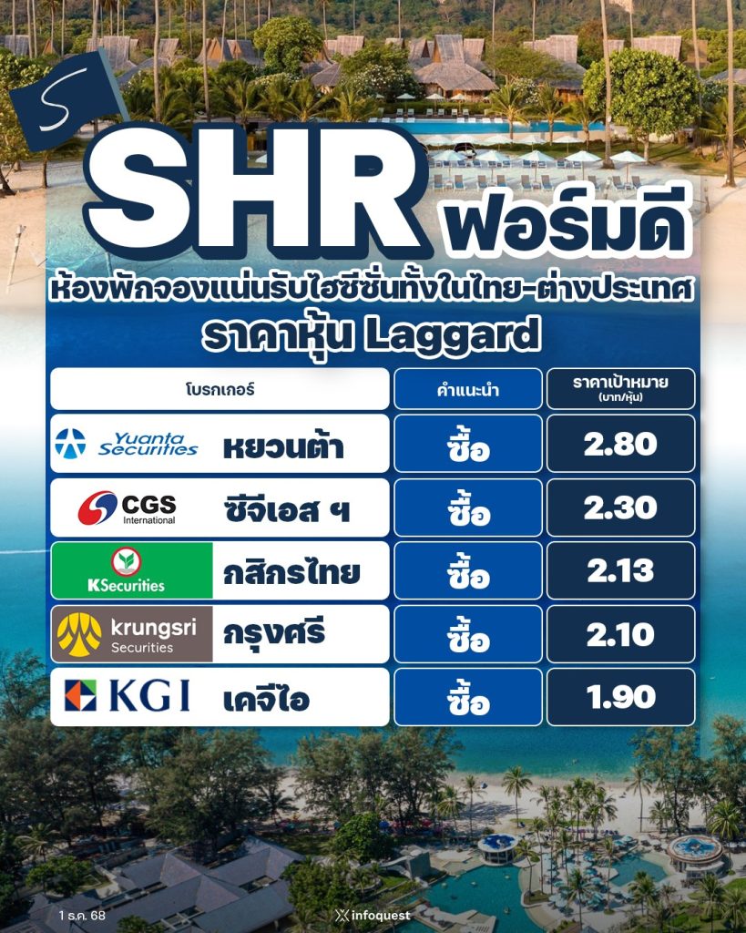 CONSENSUS: SHR ฟอร์มดี ห้องพักจองแน่นรับไฮซีซั่นทั้งในไทย-ต่างประเทศ ราคาหุ้น Laggard
