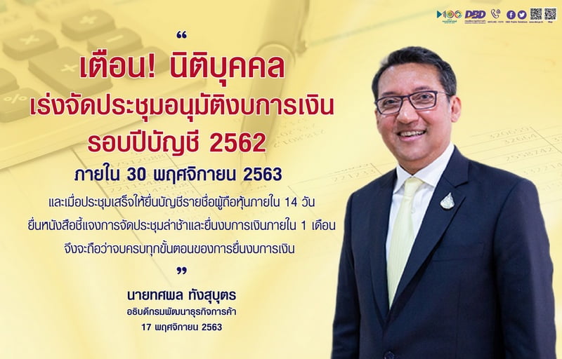 พาณิชย์ เตือนนิติบุคคลเร่งจัดประชุมผถห.อนุมัติงบการเงินปี 62 ก่อน 30 พ.ย.