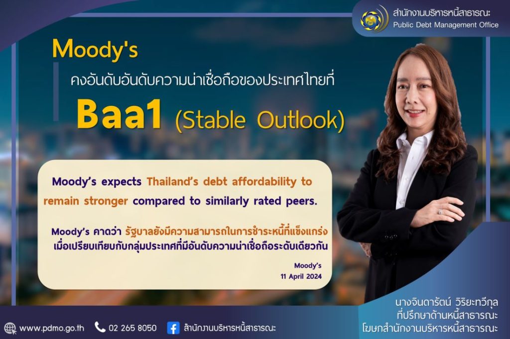 “มูดี้ส์” คงอันดับความน่าเชื่อถือไทย มั่นใจเสถียรภาพการคลังยังแข็งแกร่ง