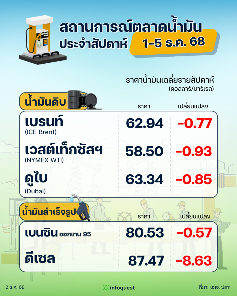 ปตท. รายงานสถานการณ์ตลาดน้ำมัน สัปดาห์ที่ 1-5 ธ.ค. 68