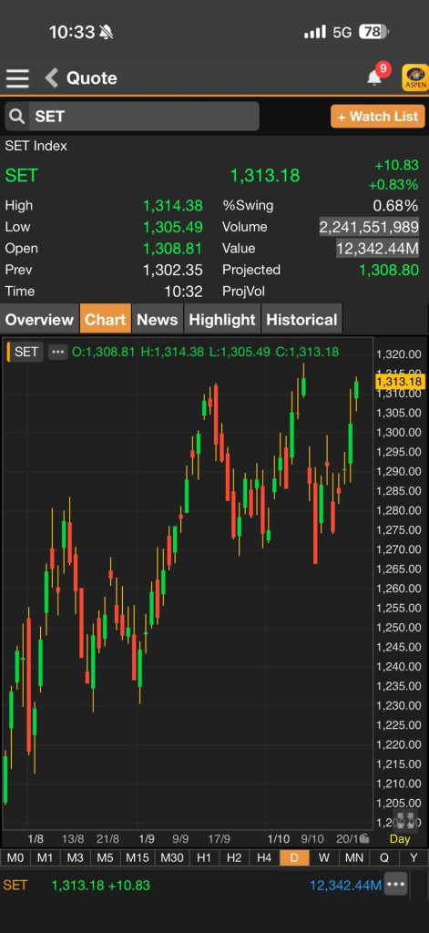 หุ้นไทยแนวโน้มดัชนีเช้าแกว่งขึ้นรับข่าวผู้นำสหรัฐ-จีนพบกันสัปดาห์หน้า น้ำมันพุ่งหนุนกลุ่มพลังงาน