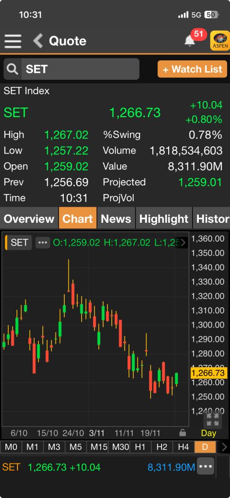 หุ้นไทยปิดเช้าลบ 1.96 จุด น้ำท่วมภาคใต้กดดัน Sentiment เสี่ยงฉุดเศรษฐกิจโค้งสุดท้าย