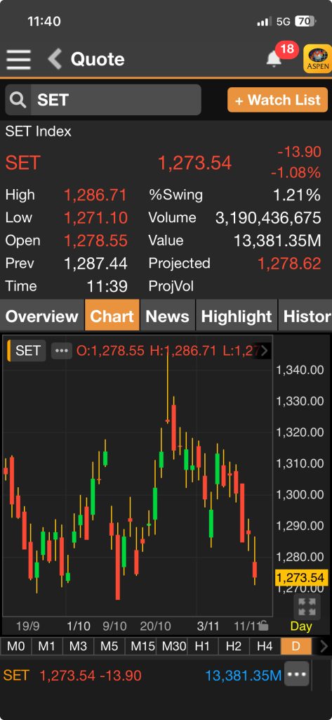 หุ้นไทยปิดเช้าร่วง 20.07 จุดรับแรงขายกลุ่มอิเล็กฯ-DELTA,บอนด์ยีลด์ดีด-งบ Q3/68 ต่ำคาด วอลุ่มหดหาย