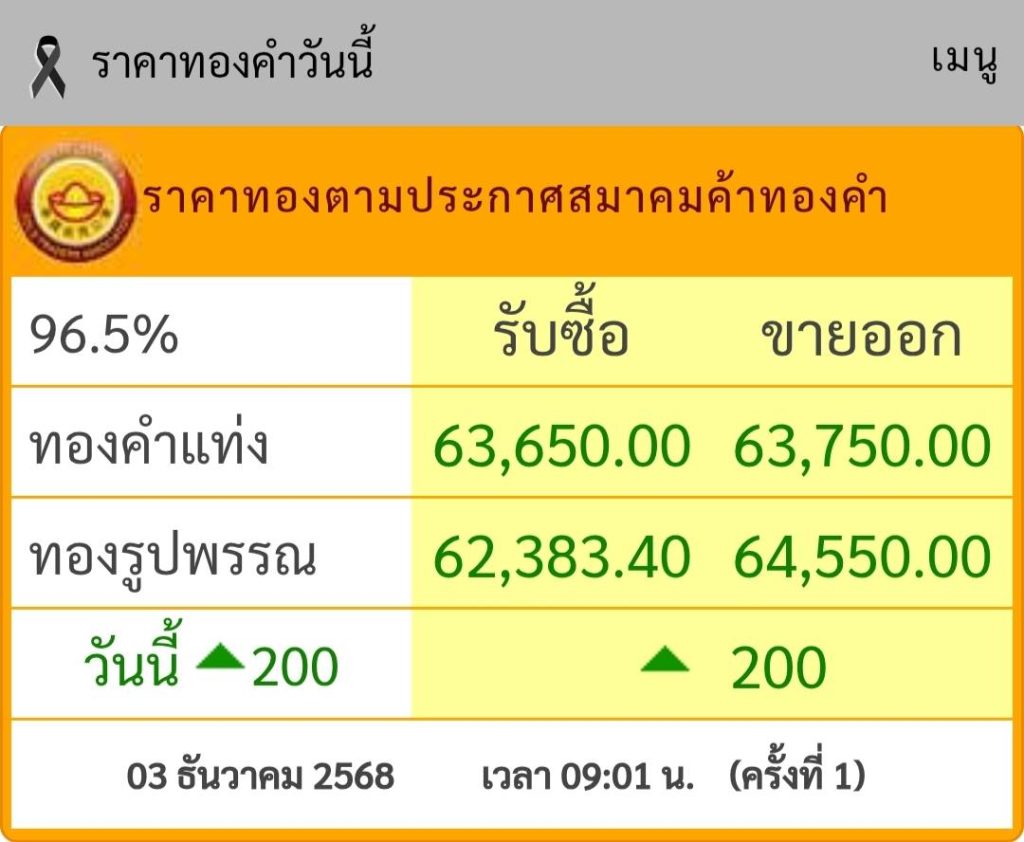 ทองเปิดเช้าปรับขึ้น 200 บาท ดันทองแท่งแตะ 65,000 รูปพรรณ 65,800