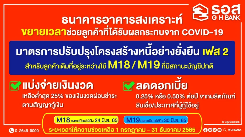 ธอส. ขยายเวลามาตรการปรับปรุงโครงสร้างหนี้ฯช่วยลูกค้าเดิม ถึงสิ้นปี 65