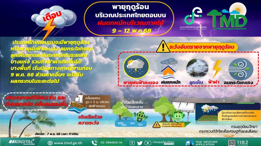 ช่วงหยุดยาว 9-12 พ.ค. เตรียมรับมือพายุฤดูร้อน-ฝนเพิ่ม