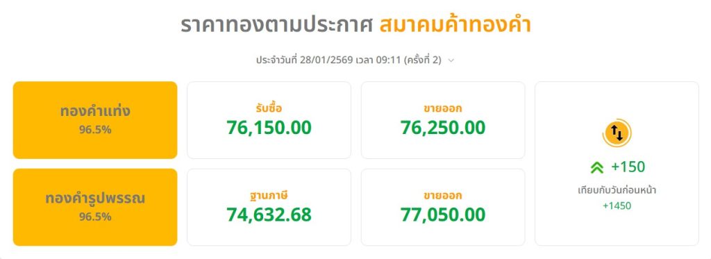 ไปไกล!!ทองไทยราคาทะลุ 77,000 หลังเช้านี้ทะยานแรง 1,450 บาท