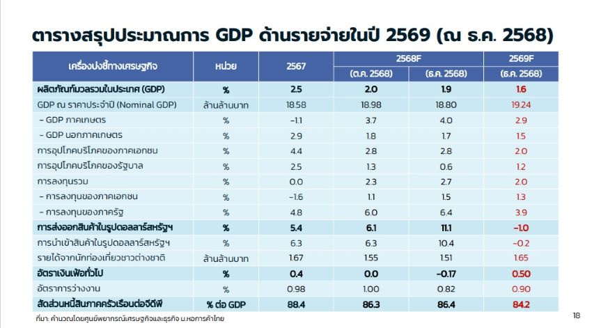 ม.หอการค้าไทย หั่นคาดการณ์ GDP ปี 68 เหลือโต 1.9% รับน้ำท่วมหาดใหญ่ฉุด ส่วนปี 69 คาดโตชะลอเหลือ 1.6%